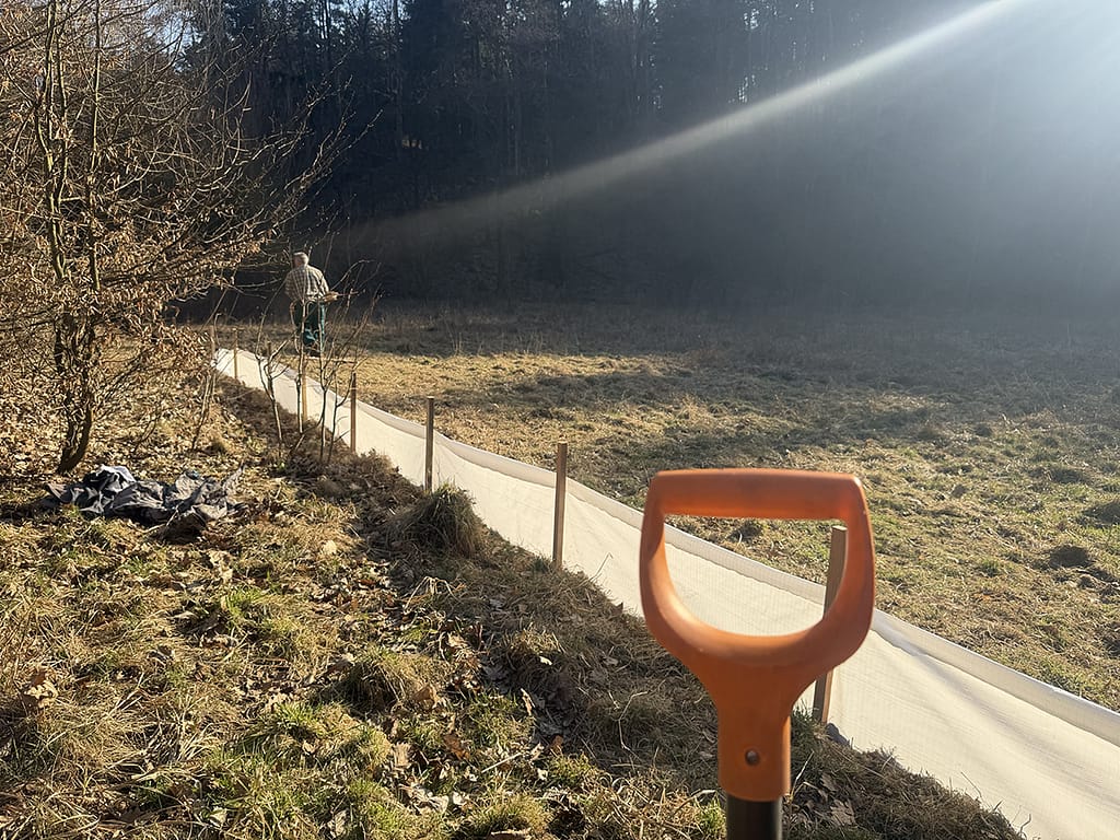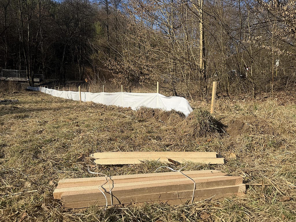 Stěna již stojí a nyní je nutné zkoordinovat „žabí hlídky“. Ty budou každý večer žabky přenášet, koordinovat nové dobrovolníky a informovat veřejnost, jak to s žabím tahem letos vypadá.