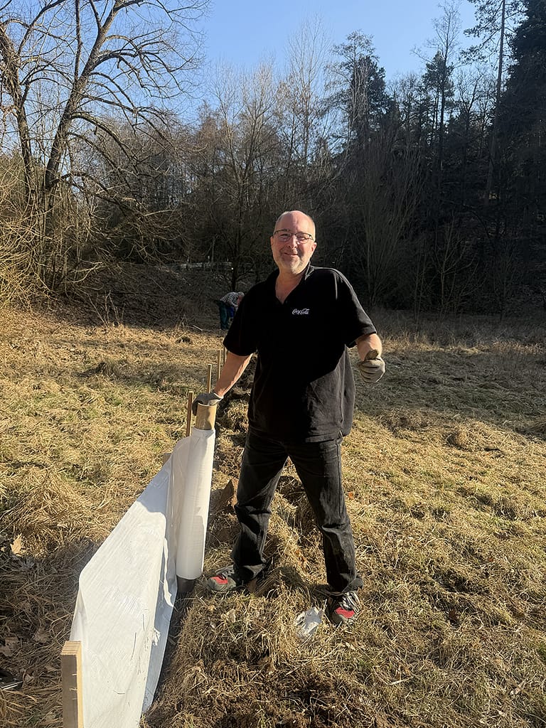Stehlíkovi se podařilo pro záchranu žab nadchnout i další Jehnické. Na stavbu bariér u cesty nakoupili speciální fólii z Hradce Králové, kolíky vyrobili pro tým na pile v Lipůvce.