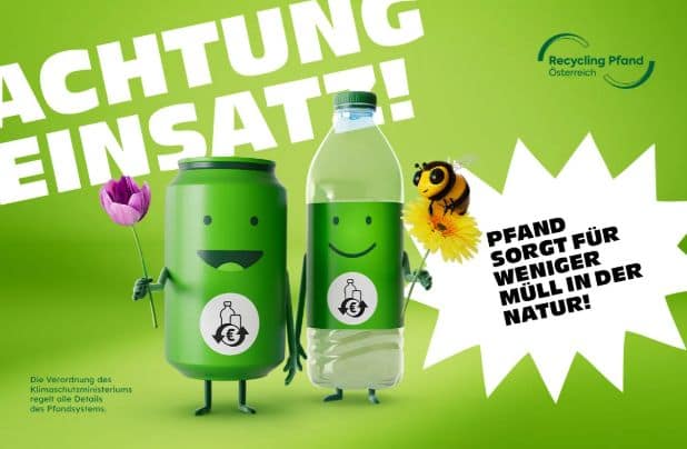 Leták ke kampani z změně zálohování petek a plechovek v Rakousku . Foto – recycling-pfand.at