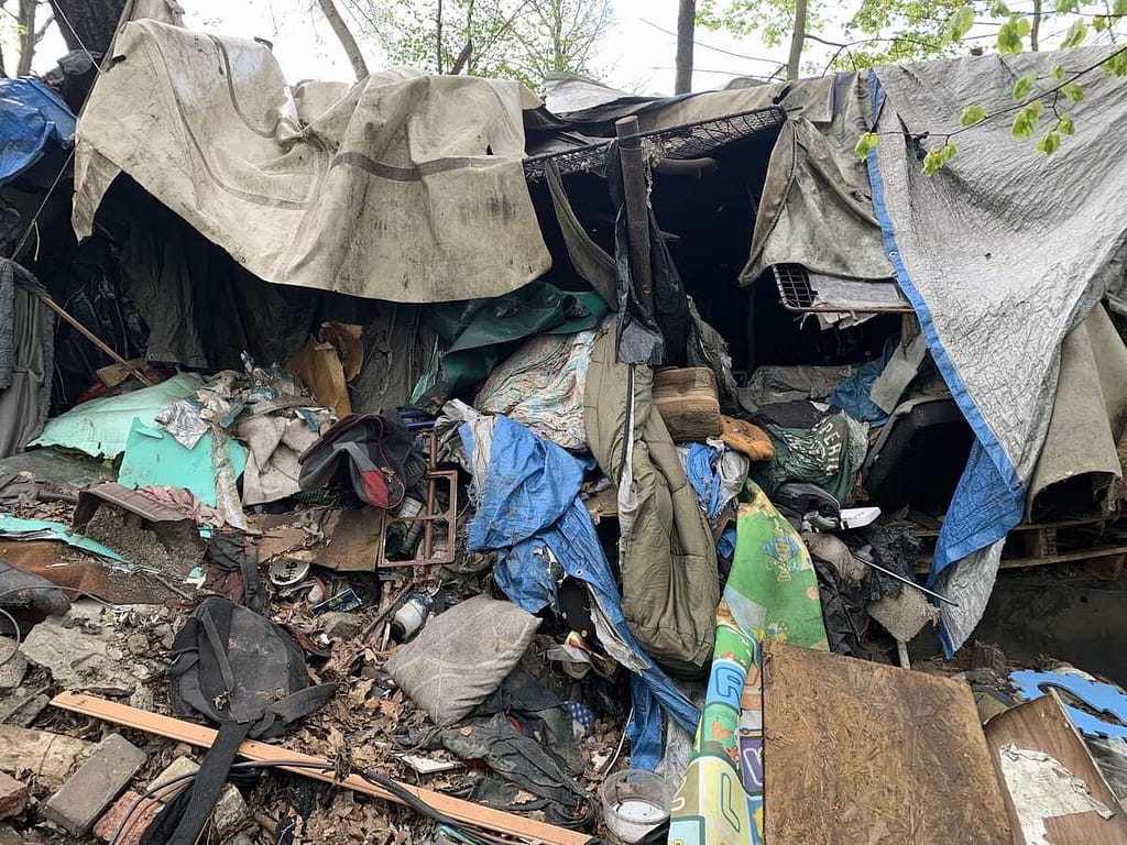 V prostoru se nacházelo i několik vyhořelých stanových přístřeší. Vzhledem k vysoké kontaminaci odpadků bylo zahájeno postupné čištění prostoru. Dvacítka odsouzených při první akci odstranila na 6,5 tuny odpadků, mezi kterými šlo najít opravdu všechno. Mimo rozšířený směsný odpad, zde bylo mnoho jízdních kol, kočárků, beden, pneumatik, kufrů, batohů, ale také elektrospotřebičů.