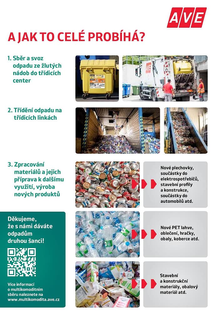 „Nové technologie třídicích linek tuto změnu umožňují. Ať už se ve žlutém kontejneru nacházejí různé druhy plastů, nebo jsou k nim přidány nápojové kartony a kovy, třídicí linka si s tím spolehlivě poradí. Jednotlivé druhy odpadů se pečlivě roztřídí a ve stejném okamžiku i zaevidují,“ vysvětlil ke změně Igor Chlup z vedení společnosti AVE.